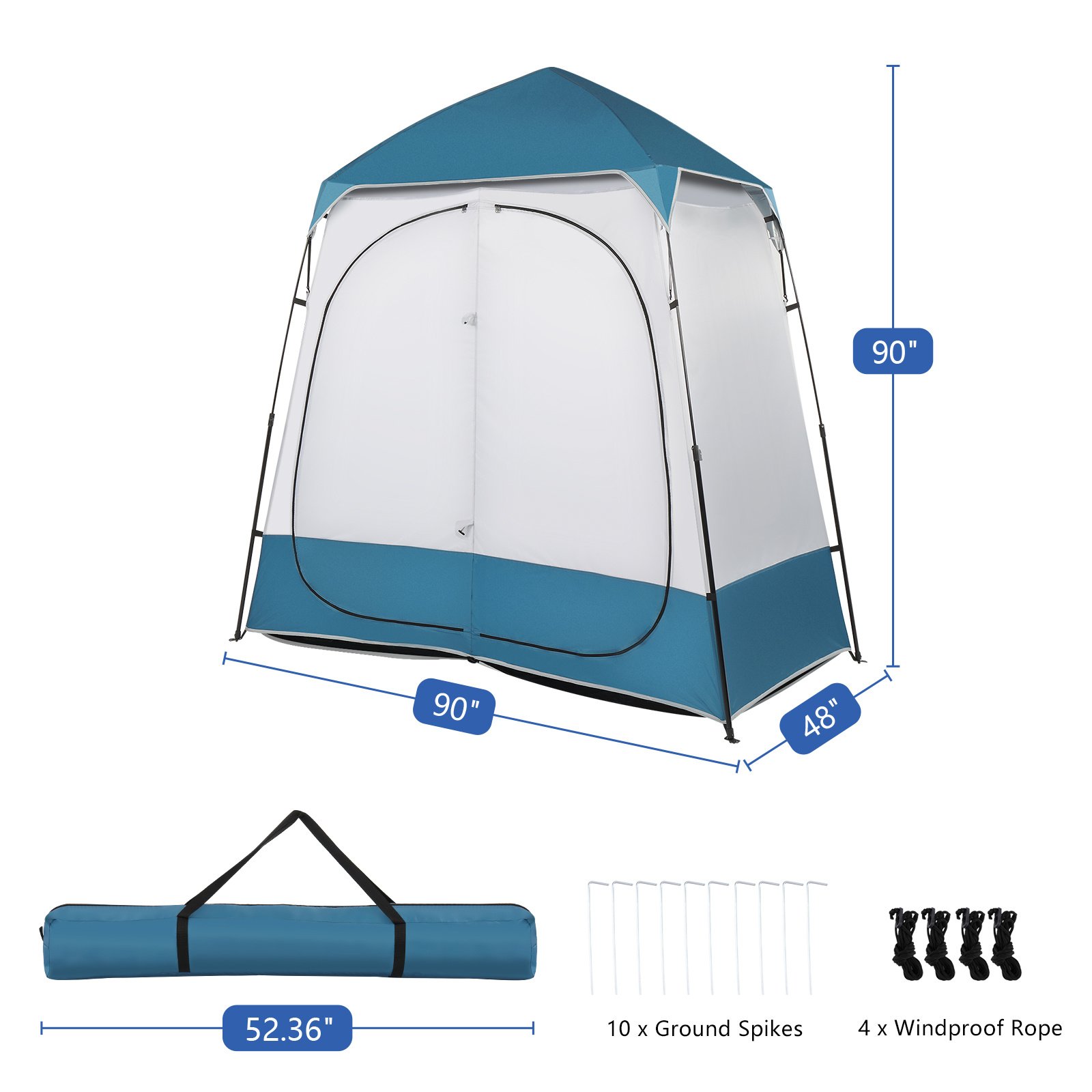 90x90x48" Portable Outdoor Pop UP Camping Shower Tent Enclosure, Shower Shelter, Changing Room, Dressing Tent, 2 Rooms, Instant Tent Blue/White RT