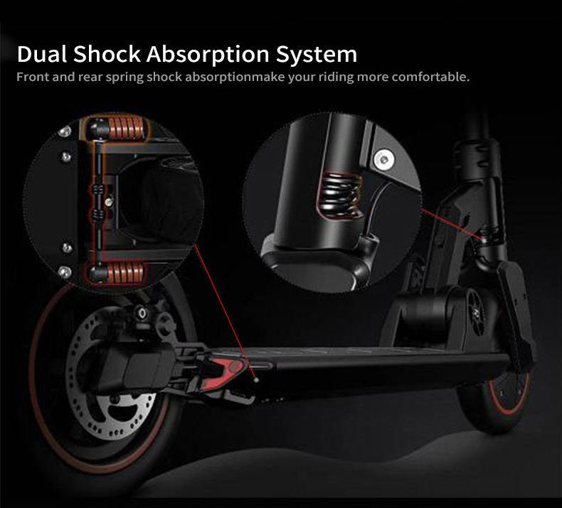 3.FOLDABLE & PORTABLE Become a tiny size when the scooter is folding. Quick folding system, easy to carry.