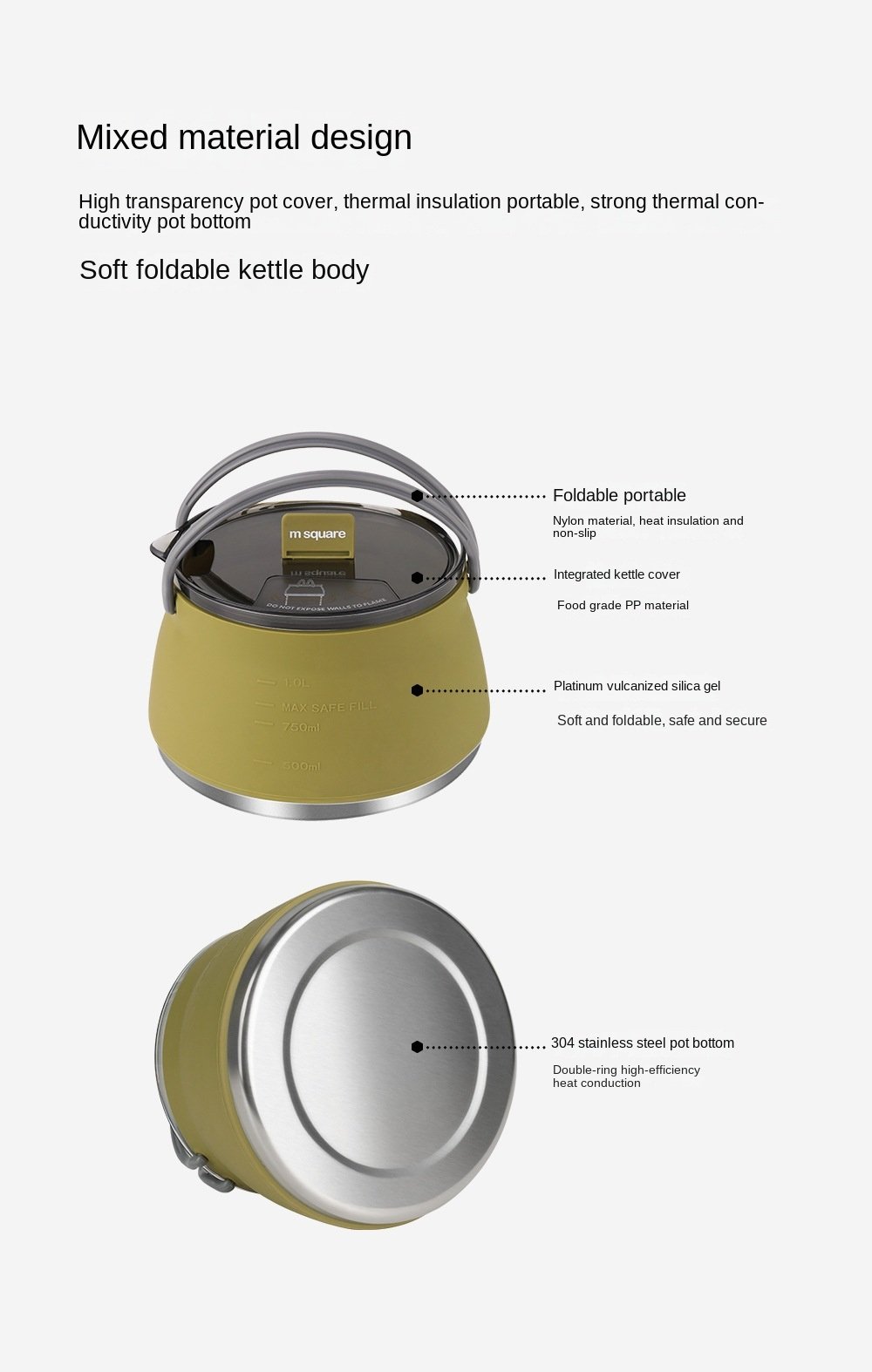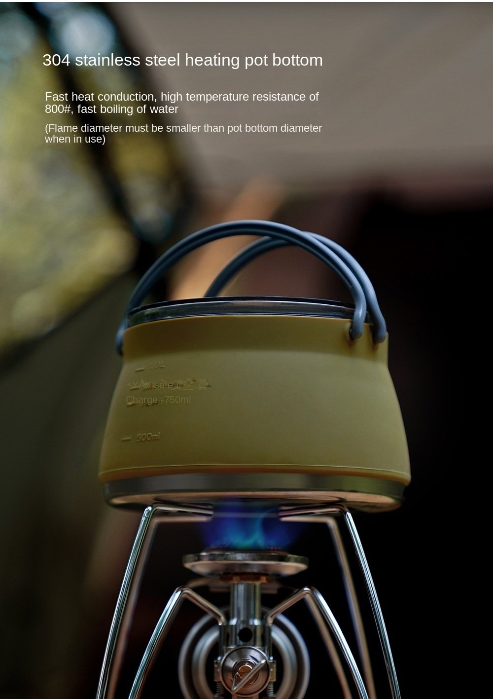 Silicone folding kettle portable wild camping outdoor open fire coffee tea cassette cooker cookware