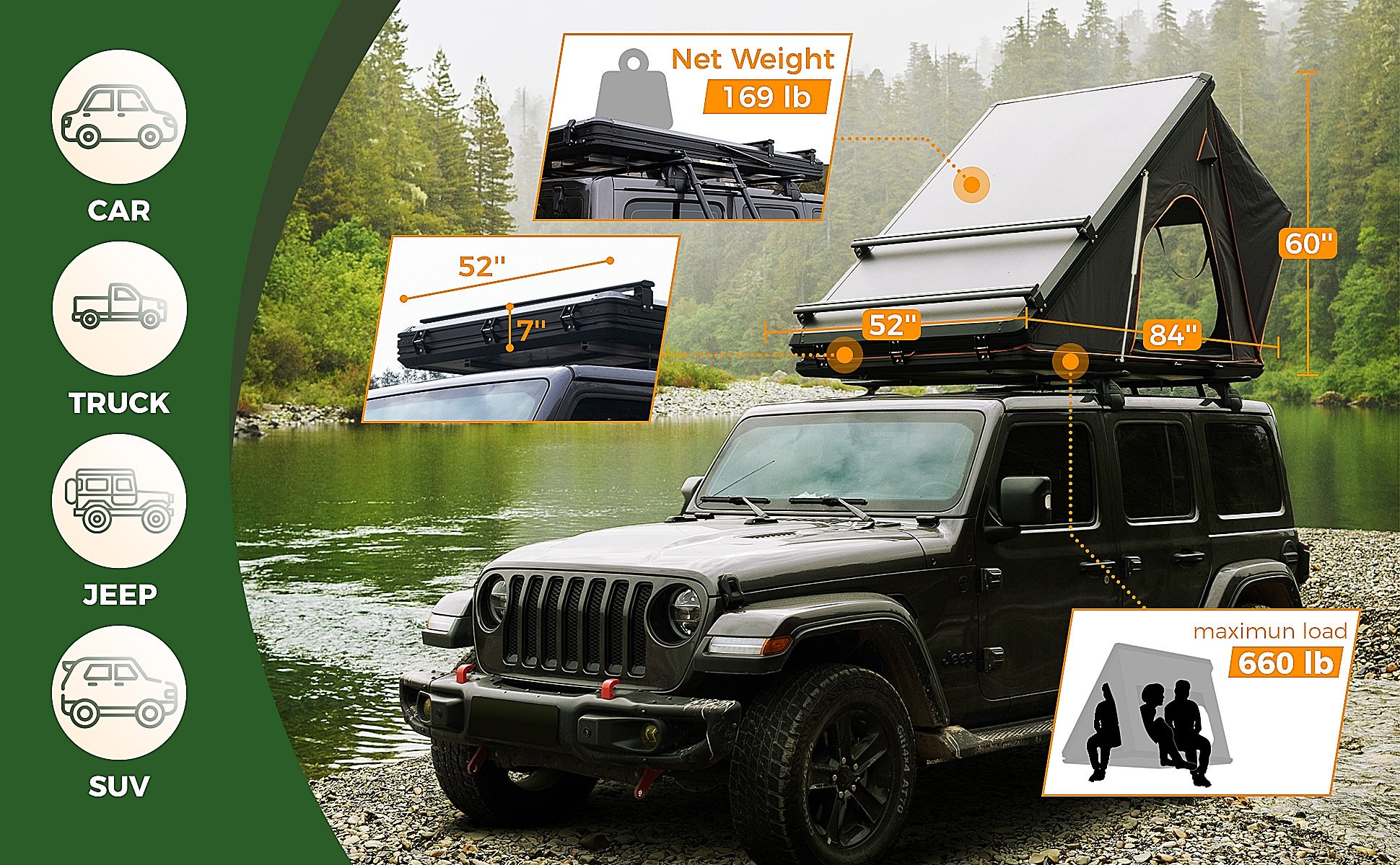 Tested to handle even the most rugged terrain. Fits nearly any vehicle with proper roof rack.